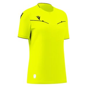 Referee women shirt made entirely in Eco-Fabric, obtained from 100% recycled PET. The crew neck has an insert at the front and knit fabric at the back. Eco mesh inserts on the underarms and the back of the neck ensure enhanced breathability. The Macron Hero logo is in silicone. The front and sleeves feature an embossed texture and the shirt has two card pockets with ergonomic design and velcro fastening.